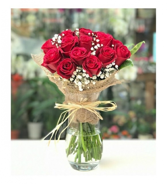 Paşabahçe vazoda 15 adet güllerden hazırlana aranjman.