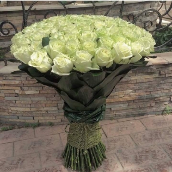 41 adet beyaz gülleri, okaliptus ve 1 adet beyaz orkide