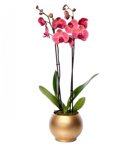 Orkidenin eşsiz güzelliği ve zarafeti, altın ile bir araya geldiğinde ortaya seyrine doyulmaz bir aranjman çıkıyor. Tüm görkemi ve albenisi ile Altın Akvaryum Saksıda Ateş Kırmızı Çiftli Orkide, yaşam alanlarını zenginleştirmek için sizi bekliyor. Ateş kırmızısı çiftli orkidenin güzelliğini altın akvaryum saksı ile birleştiren bu özel aranjman sayesinde, yaşam alanlarına özgün bir dokunuş yapabilirsiniz. Altın Akvaryum Saksıda Ateş Kırmızı Çiftli Orkide aranjmanını; dilerseniz kendiniz için, dilerseniz sevdiklerinize hediye etmek için de tercih edebilirsiniz. Yeni bir işe başlayan, yeni bir ev tutan veya kariyerinde özel bir an yaşayan sevdiklerinize hediye edebileceğiniz bu özel aranjmanı; sıradan bir günü özelleştirmek veya Anneler Günü, doğum günü, Sevgililer Günü gibi, yıl dönümü gibi özel günleri unutulmaz kılmak adına sipariş edebilirsiniz. Siparişiniz sonrasında çıkacak “Not oluşturma” sayfasında birkaç cümlelik not oluşturarak hediyenizi daha anlamlı bir hale getirmeyi unutmayın.