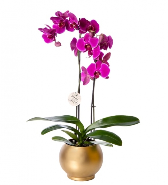 Ürün İsmi: Altın Renkli Saksıda Mor Çiftli Orkide
