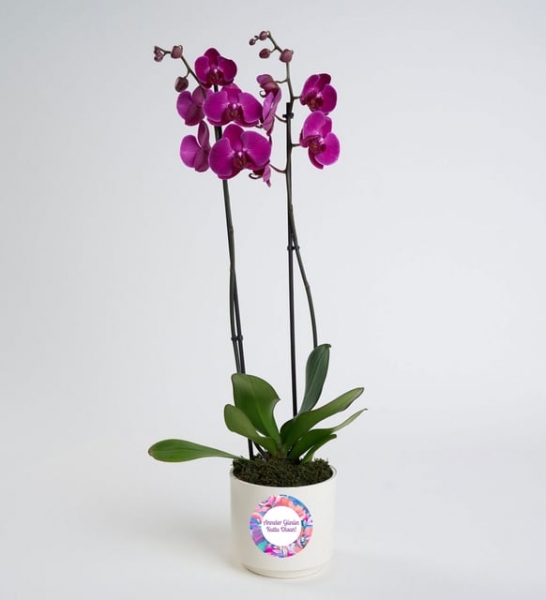 Ürün İsmi: Anneler Günü Stickerlı Saksıda Mor Çiftli Orkide