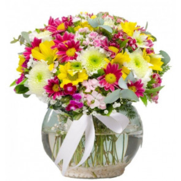 Mevsimin taze karışık çiçekleri, baharı ruhumuzda hissettirir. Baharın güzelliğini sevdiklerinizle paylaşmak için beyaz gerbera ve mevsimin karışık taze çiçeklerinin enerjisinden faydalanabilirsiniz. Not: Karışık kır çiçekleri ürünlerimiz, mevsimine uygun taze çiçekler ile hazırlanacaktır.