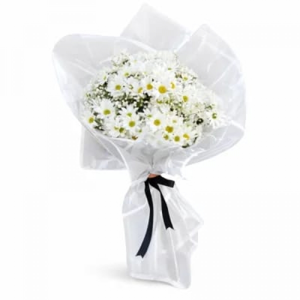 Beyaz buket kağıdında beyaz papatyalar ile hazırladığımız papatya el buketimiz sizler ve sevdiklerinizi mutlu etmek için hazırlandı...
