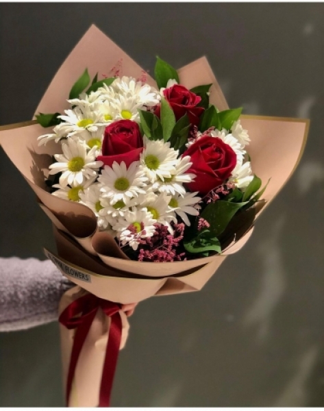 Beyaz Papatya ve Kırmızı gül Buketi