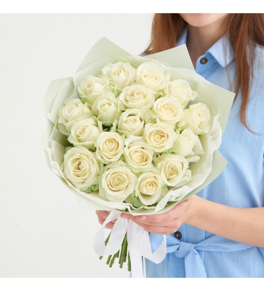Saflığın simgesi 21 Adet Beyaz Gül ile Harika Bir Gül Buketi.