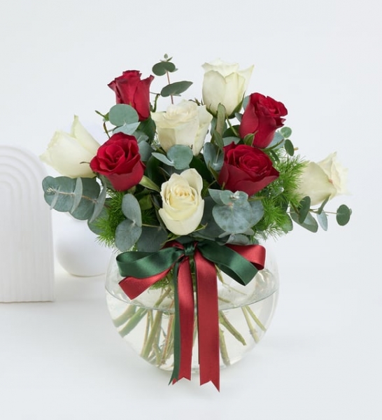 Bazı anlar vardır ki, sadece bakışlarla ve çiçeklerle anlatılabilir… İşte bu şık aranjman, kelimelere ihtiyaç bırakmadan duygularınızı zarafetle ifade etmenin en etkileyici yoludur. Cam akvaryum içinde özenle yerleştirilmiş 4 kırmızı gül ve 5 beyaz gül, aşkın tutkusunu ve saflığını tek bir aranjmanda birleştiriyor. Göz alıcı kırmızı kurdele ve koyu yeşil detaylar, aranjmana sofistike bir dokunuş katarken; okaliptus ve mirkeladus yaprakları sayesinde buket, doğanın ferahlatıcı kokusunu yaşam alanınıza taşır. “Seni seviyorum” demenin en sade ama en etkileyici haliyle hazırlanan tasarım, özel günler kadar sıradan bir günü de unutulmaz kılmak için harika bir seçimdir. Sevdiklerinize olan hislerinizi dile getirmenin zarif yolu olan bu aranjmanı, doğum günleri, yıldönümleri veya sadece içten bir teşekkür için gönül rahatlığıyla tercih edebilirsiniz. Siparişiniz sonrasında çıkacak “Not oluşturma” sayfasında birkaç cümlelik not oluşturarak hediyenizi daha anlamlı bir hale getirmeyi unutmayın.
