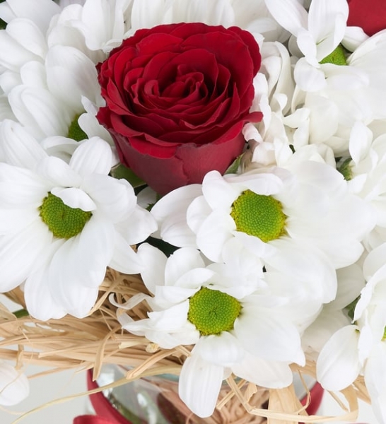 Sadeliğin ve zarafetin buluştuğu bu özel aranjman, sevdiğinize en saf ve samimi duygularınızı ifade etmenin en güzel yoludur. Kırmızı güllerin aşkı ve tutkuyu simgeleyen etkisi, papatyaların saf güzelliği ile birleşerek unutulmaz bir hediye sunar. 3 adet kırmızı gül, ilişkinizin gücünü ve samimiyetini ifade ederken; beyaz papatyalar, masumiyetin ve içtenliğin sembolü olarak sevdiklerinize ferahlık ve mutluluk katar. Duygularınıza tercüman olmanın ötesinde daima anılarda yer edinecek bir çiçek aranjmanı arıyorsanız, kırmızı güller ve beyaz papatyaların muhteşem uyumu gören herkesin yüzünde kocaman gülümsemeler oluşturmanızı sağlayacaktır. Ayırca kristal şık cam vazo, zarif çiçekleri daha da göz alıcı kılar ve evin her köşesine zarafet katmanıza vesile olur. Bu eşsiz aranjmanla, sıradan bir günü anlamlı kılabilir veya özel bir anı ölümsüzleştirebilirsiniz. Siparişiniz sonrasında çıkacak “Not oluşturma” sayfasında birkaç cümlelik not oluşturarak hediyenizi daha anlamlı bir hale getirmeyi unutmayın.