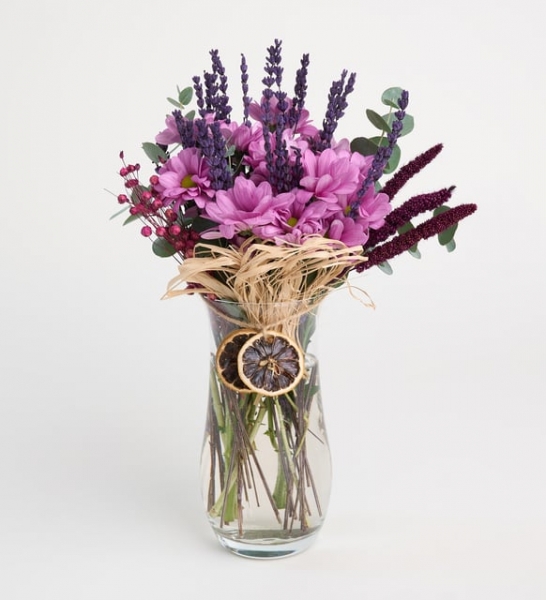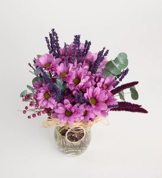Bakım Önerisi:Çiçek buketinizi/vazonuzu eve getirdiğinizde, ambalajını açıp varsa iplerini çözün. Çiçeklerin daha fazla su çekebilmesi için alt yaprakları temizleyin ve saplarını 3-5 cm kadar, suyun altında tutarak kesin. Çiçekleri yerleştireceğiniz vazoyu iyice temizleyin ve vazoya oda sıcaklığında su doldurun; su seviyesini sapların yarısına kadar gelecek şekilde ayarlamaya dikkat edin. Vazonuza bir paket çiçek besini eklemeyi unutmayın. Çiçeklerinizi direkt güneş ışığından, rüzgardan ve ısı kaynaklarından (radyatör, klima, soba gibi) uzak tutun. Su seviyesini her gün kontrol ederek değiştirin ve her su değişiminde sapları 0.5-1 cm kadar tekrar kesin. Ayrıca, suyu klorsuz ve dinlenmiş su ile değiştirmek çiçeklerinizin ömrünü uzatmanızı sağlayacaktır. Solan veya kuruyan çiçekleri temizleyerek diğer çiçeklerin daha uzun süre taze kalmasını sağlayabilirsiniz.