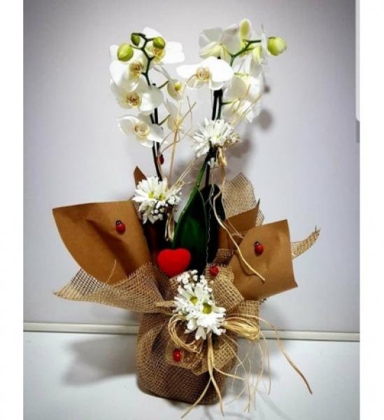 ÇİFT DALLI BEYAZ ORKİDE VE ÖZEL TASARIM SÜSLEME