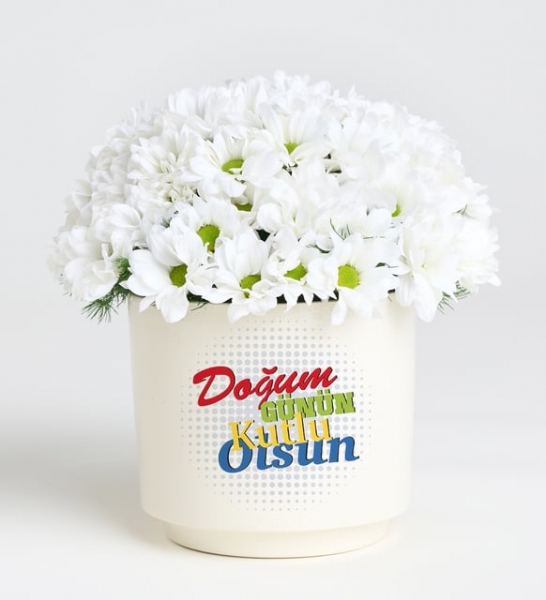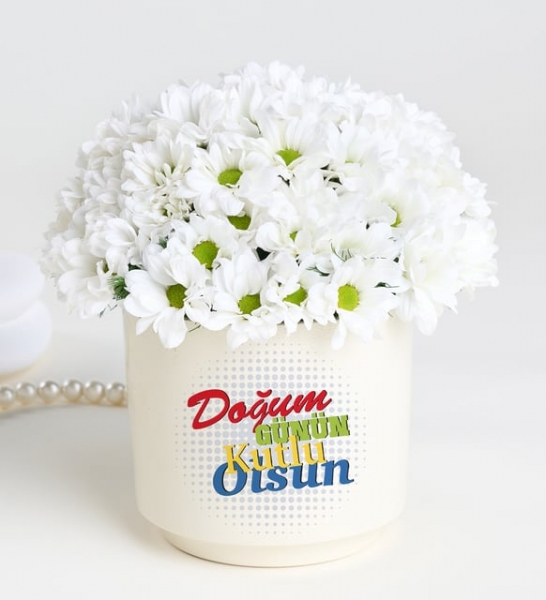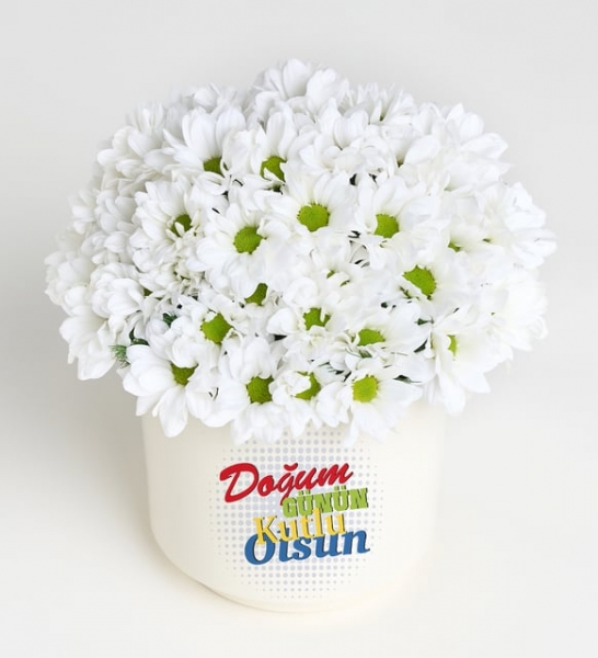 Ürün İsmi: Doğum Günü Tebrikli Papatya Aranjmanı