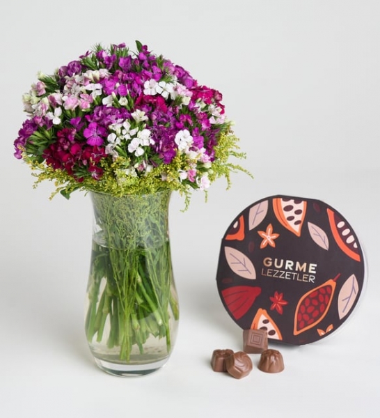Sevdiğiniz kişiye hem göz alıcı bir çiçek aranjmanı hem de damağında iz bırakacak bir hediye vermek ister misiniz? Gurme Lezzetler Kutusu ve Cam Vazoda Hüsnüyusuflar, sevdiklerinizin kalbine dokunmanın en lezzetli ve zarif yolunu sunmaktadır. Hüsnüyusufların göz alıcı renkleri ile Gurme Lezzetleri bir araya getirerek unutulmaz bir hediye verebilirsiniz. Her biri özenle seçilmiş çiçekler ve Gurme Lezzetler, bu özel tasarımı sadece bir hediye değil, aynı zamanda özel anları kutlamanın en şık ve tatlı yolu haline getiriyor. İster doğum günü, ister yıldönümü olsun, bu zarif kombinasyon, her anı daha da özel kılacak. Şeffaf cam vazoda sunulan Hüsnüyusuflar, kristal parlaklığındaki silindir vazonun şıklığıyla buluşurken, yanında gelen Gurme Lezzetler ise sevdiklerinizin tatlı bir sürprizle mutlu olmasını sağlar. Siparişiniz sonrasında çıkacak “Not oluşturma” sayfasında birkaç cümlelik not oluşturarak hediyenizi daha anlamlı bir hale getirmeyi unutmayın!