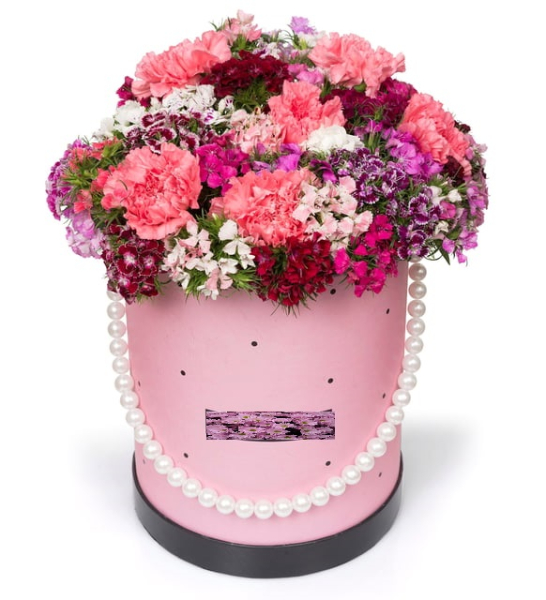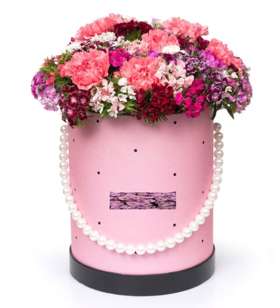 incili pembe kutuda karışık hüsnüyusuf ve karanfil aranjmanı - incili pembe kutuda karışık hüsnüyusuf ve karanfil aranjmanı