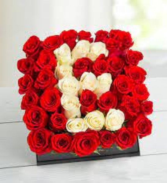 Adını kalbinize yazdınız yetmedi mi? Gelin kırmızı güllerle dolu bir kutunun tam ortasına beyaz güllerle baş harflerini yazalım.