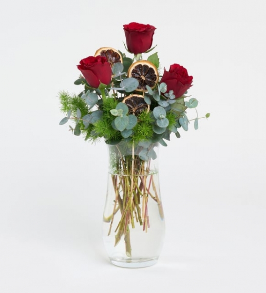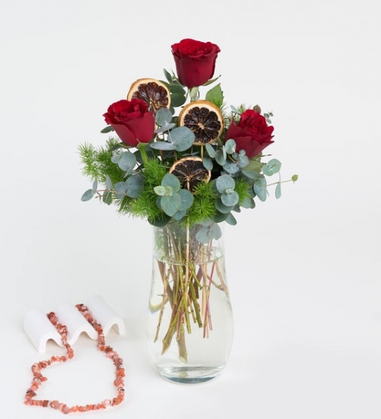 Bazen sadece birkaç detay, en derin duygularınızı ifade etmek için yeterlidir. Zarif kristal cam vazoda sunulan 3 kırmızı gül, bu özel anların en anlamlı taşıyıcısıdır. Aşkın tutkusunu ve güzelliğini simgeleyen kırmızı güller; kurutulmuş limonun nostaljik kokusu, mirkeladus ve okaliptusun tazeleyici dokunuşlarıyla benzersiz bir bütünlük oluşturur. Kristal vazonun şıklığıyla tamamlanan bu aranjman, sadelik içinde derin anlamlar taşır. Sevginizi anlatmakta kelimeler yetersiz kalıyorsa bırakın kırmızı güllerin muhteşem güzelliği sizin adınıza konuşsun ve sevdiklerinizin yüzünde kocaman gülümsemeler oluştursun. Göz alıcı bir tasarım ve duygu dolu bir anlam için Kristal Cam Vazoda 3 Kırmızı Gül tam size göre! Hem sıradan bir günü güzelleştirmek hem de özel günlerinizi unutulmaz kılmak için hemen sipariş edebilirsiniz. Siparişiniz sonrasında çıkacak “Not oluşturma” sayfasında birkaç cümlelik not oluşturarak hediyenizi daha anlamlı bir hale getirmeyi unutmayın.