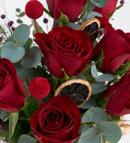 Kırmızı güllerin herkesi etkisi altına alan eşsiz uyumu, bu aranjmanda hayat buluyor. Kurdeleli Yeşil Çizgili Vazoda 9`lu Kırmızı Gül aranjmanı, sevdiklerinizi mutlu etmeniz için sizi bekliyor! Yeşil çizgili polimer vazo içerisinde bir araya gelen 9 adet kırmızı gül, “Birbirimizi sonsuza kadar seveceğiz.” mesajını taşıyor. Göz alıcı kırmızı kurdele ve koyu yeşil kurdele, aranjmana sofistike bir dokunuş katıyor. Ferahlatıcı okaliptus dalları ise, aranjmanı tamamlıyor. Solucan otu, mor luna ve mirkeladus ile zenginleşen aranjman; kurutulmuş limon ve rafya ile şık bir görünüme kavuşuyor. Bu özel aranjman, özel günler kadar sıradan bir günü de unutulmaz kılmak için harika bir seçim oluyor. Sevdiklerinize olan hislerinizi dile getirmenin zarif yolu olan bu aranjmanı; doğum günleri, yıl dönümleri veya sadece içten bir teşekkür için gönül rahatlığıyla tercih edebilirsiniz. Siparişiniz sonrasında çıkacak “Not oluşturma” sayfasında birkaç cümlelik not oluşturarak hediyenizi daha anlamlı bir hale getirmeyi unutmayın.