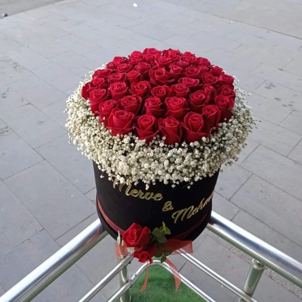 kutuda 41 güllerden oluşan kız isteme çiçeği