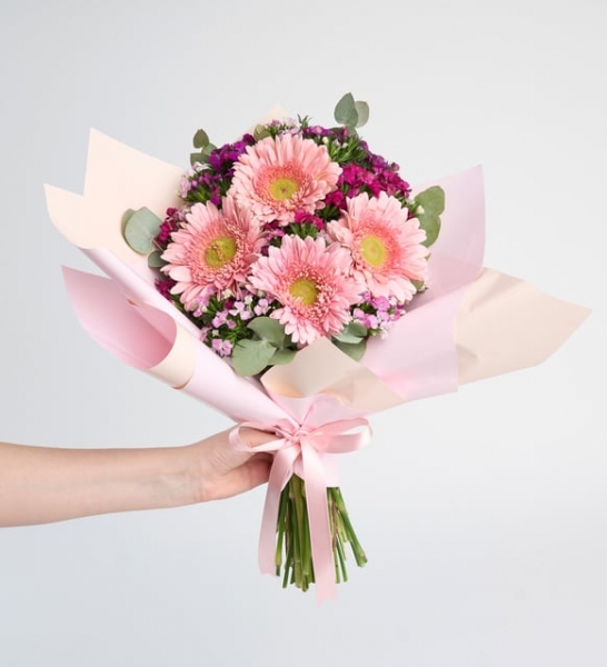 Ürün İsmi: Lila Bukette Pembe Gerberalar ve Hüsnüyusuflar