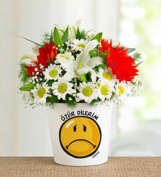 Sevdiklerinizin kalbini yeniden kazanın. Özür Dilerim temalı vazo içerisinde papatyalar ve güller ile hazırlanan bu özel aranjman, sevdikleriniz için samimi bir özür olacak.