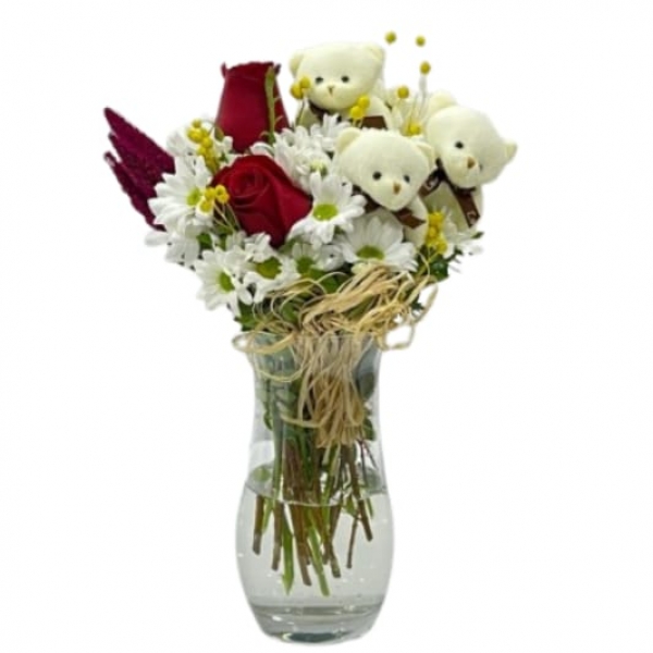 Özür Dileme: Eğer bir hata yapıldıysa veya bir özür sunmak isteniyorsa, bu zarif aranjman içerisindeki çiçekler ve peluş ayıcık anlamlı bir özür ifadesi olabilir.