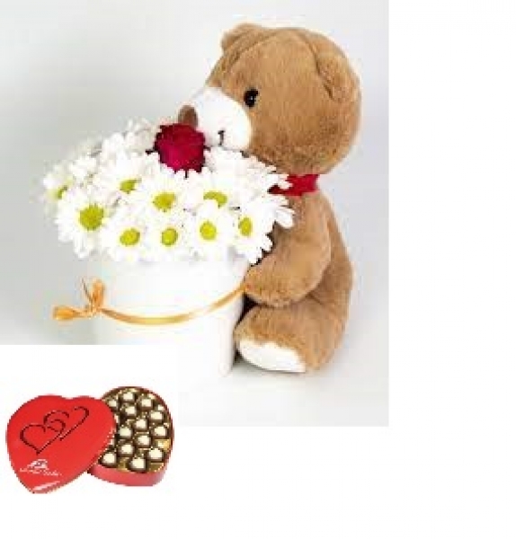 Papatya Sevimli Peluş ve kalp çikolata