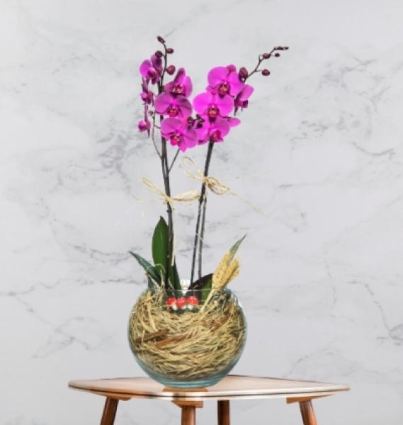 İsterseniz sevdiğiniz kadın için özel bir günde, isterseniz onları şımartmak istediğinizde, hiç farketmez... Mor orkideler şık görünümleriyle, sevdiğiniz kadına kraliçeler gibi hissettirmek istediğinizde en büyük yardımcınız olabilir. Unutmayın, mor orkideler her zaman çok özeldir ve hiçbir kadın bu jeste karşı koyamaz. Cam Fanusta 2 Dal Mor Orkide: 1 adet çiftli mor orkide ile hazırlanmıştır. Sevdiğiniz kadına kraliçeler gibi hissettirmeniz için tasarlanmıştır.