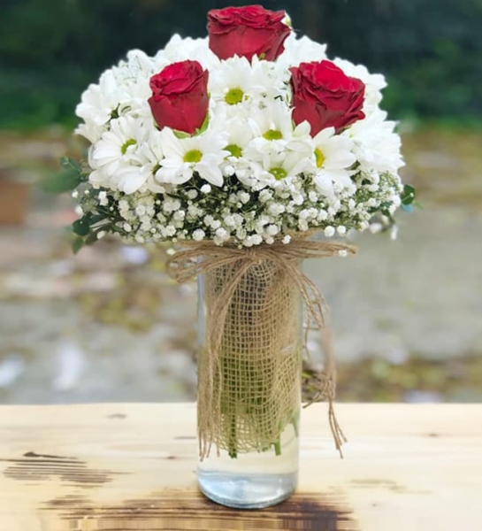 Aşkın simgesi kırmızı güller ve papatyalar bu eşsiz aranjmanda bir araya geldi. Aşkınızı ilk kez ilan ediyorsanız veya tazelemek istiyorsanız Aşkın Simgesi Güller ve Papatyalar tam size göre bir aranjman!