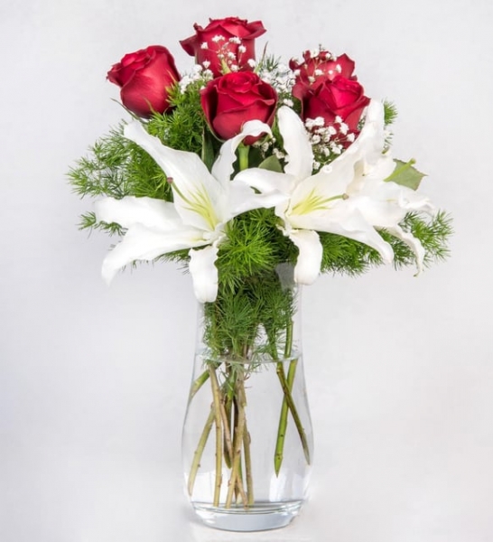 Hissettiğiniz saf aşkın yansıması, lilyum ve gül buluşmasında saklı. Önce görüntüsü sonra kokusuyla gören gözlerin büyüleneceği bir aranjman… Aşkınızın simgesi bu hediye şimdiden onun başını döndürmeye yetti bile! Temizliğin ve saflığın simgesi beyaz lilyum ile aşkın geleneksel sembolü olan kırmızı güllerden oluşan bu aranjman ile siz de sevdiklerinizin özel günlerde ya da onun için özel olamsını istediğiniz her anda mutlu edebilirsiniz. Kırmızı ve beyaz rengin eşsiz uyumu ile bu aranjman, bulunduğu ortama güzellik ve zarafet katar. Bu sayede de sevdiklerinizin mutluluk kaynağı olmayı başarır!