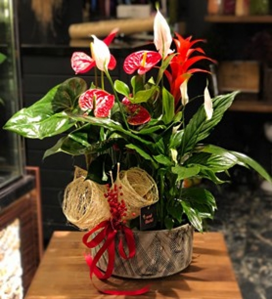 Salon çiçeği kategorimizde özel bir yeri olan olan bu bitkilerimiz, sıcak tondaki çiçekleri ve çeşitli formdaki yapraklarıyla harika bir doğallığa sahip. Bu bitkiler ev ve ofislerin yeni gözdesi olacak. Bu tasarımımız, göz alıcı görünümüyle tüm sıcaklığı kendine çekecek ve ortamınıza doğal bir hava katacaktır.