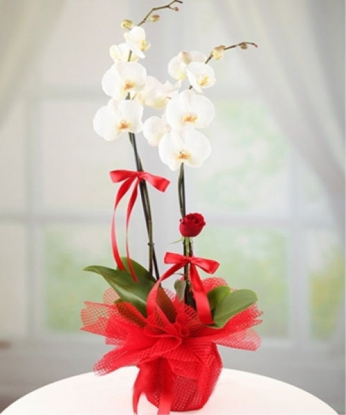 Beyaz orkide sayısı: 2 adet (iki dallı beyaz orkide çiçeği)