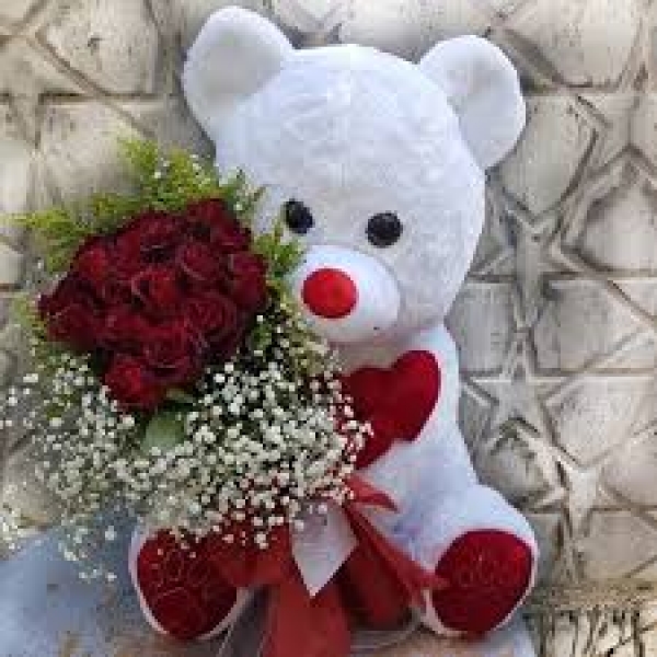 Sevimli Peluş Ayıcık ve 21 Kırmızı Güller