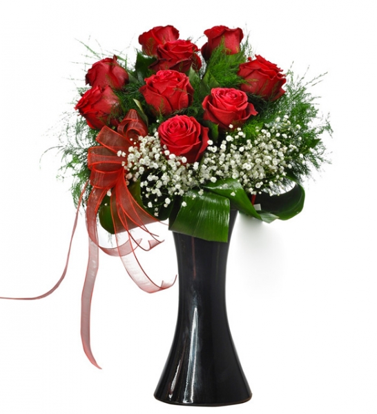 Siyah Kalipso Vazoda 9 Kırmızıgül