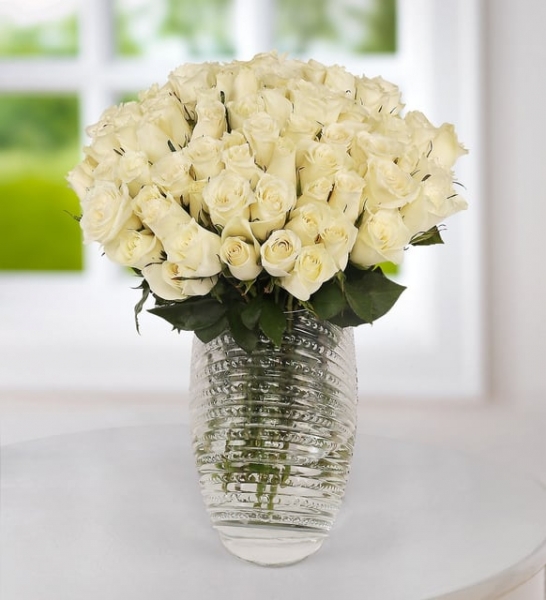 Not: Vazoda 101`Li Beyaz Gül aranjmanı içerisinde yer alan bazı çiçekler, mevsimsel şartları sebebiyle çiçek açmamış halde, kapalı olarak gönderilebilir. Kapalı olan çiçekler 1-2 gün içerisinde, oda sıcaklığında açmaktadır.