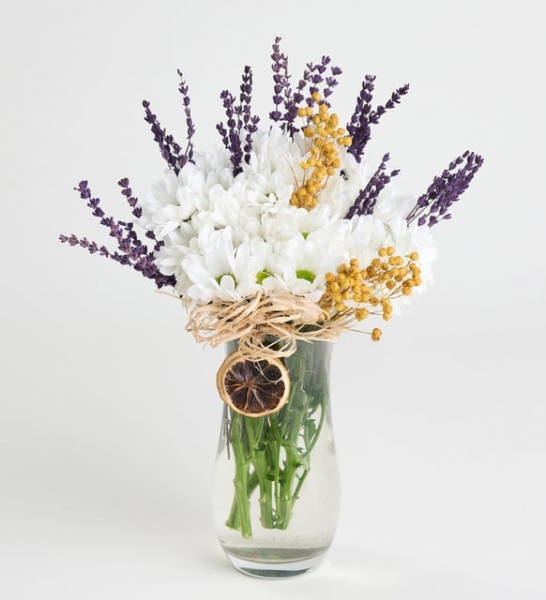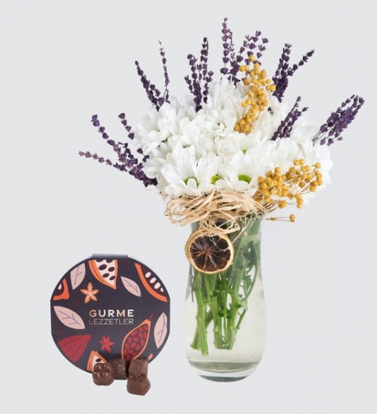 Seviyor, sevmiyor… Papatya falları şimdi çok eskilerde kaldı! Bu aranjmanı görür görmez aklınıza gelen ilk kişi, sizi çok seviyor demektir! Vazoda Beyaz Papatya Aranjmanı ve Gurme Lezzetler ile şimdi onun kalbine dokunma sırası sizde! Paşabahçe kristal silindir vazoda sergilenen beyaz biçme papatyalar, size en özel duygularınızı anlatmanız için bir fırsat sunuyor. Sarı luna, rafya, burlap ip, lavanta ve kurutulmuş limon ile süslenen bu özel aranjman, her detayı ile göz kamaştırıyor. Bu özel çiçeğe, birbirinden özel lezzetler ile hazırlanan Gurme Lezzetler Kutusu eşlik ediyor. Size de, sevdiklerinize bu özel hediye setini hediye etmek ve onların mutluluğu ile mutlu olmak kalıyor! Vazoda Beyaz Papatya Aranjmanı ve Gurme Lezzetler ile siz de dilerseniz özel günlerde, dilerseniz sıradan bir günde sevdiklerinize sürpriz yapabilirsiniz. Ayrıca, siparişinizin ardından çıkan “Not oluşturma” sayfasına birkaç cümlelik bir not ekleyerek duygularınızı daha da anlamlı bir şekilde ifade edebilirsiniz.