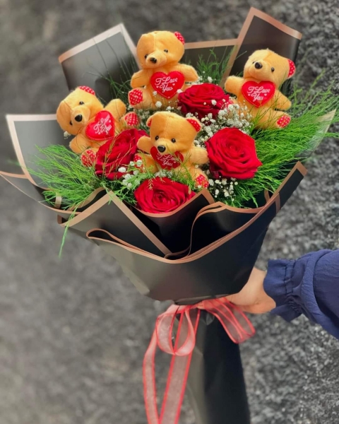 VİP BUKET AYICIK VE GÜLLER