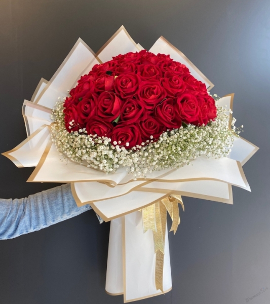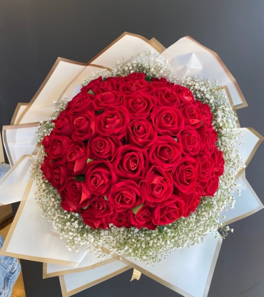 Yapay kırmızı güllerin grup şekilde derlenmesiyle hazırlanan modelimizin kıyılarında yapay cipsofilyalar kullanıldı. Natürel ambalajla süslenen gül buket, kız isteme, söz- nişan çiçeği olarak tercih edilebilecek güzellikte. 1. kalite yapay kırmızı gül buket şehir dışına kız istemeye gidecekler ve hatıra olarak evinde kullanmak isteyenler için tercih edilecek en güzel modelimiz.