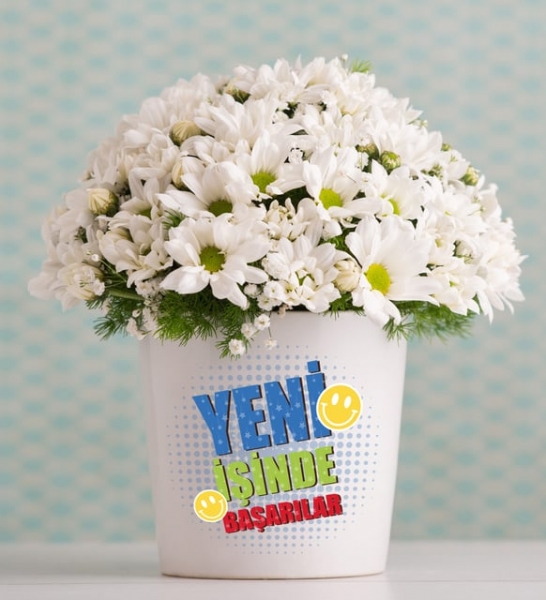 Saf duyguların ve masumiyetin sembolü olan beyaz papatyalar ile sevdiklerinizi ilk iş gününde kutlayabilir, yanlarında olduğunuzu gösterebilirsiniz. Seramik vazo üzerinde “Yeni İşinde Başarılar” mesajı yer alan bu ürün, başka hiçbir mesaja gerek kalmadan ilk iş gününde hediye ettiğiniz kişinin yanında olduğunuzu gösterir. Bu özel hediye, hediye ettiğiniz kişinin kendini daha özgüvenli ve motive hissetmesine vesile olacaktır. Ayrıca oldukça şık ve tatlı bir dekorasyon parçası olarak iş yerindeki ortamına özel bir ekleme yapmanızı sağlar. İlk iş gününde sevdiklerinizi kutlamak ve onlara olan güveninizi göstermek için gönül rahatlığıyla bu özel aranjmanı tercih edebilirsiniz. Siparişiniz sonrasında çıkacak “Not oluşturma” sayfasında birkaç cümlelik not oluşturarak hediyenizi daha anlamlı bir hale getirmeyi unutmayın.