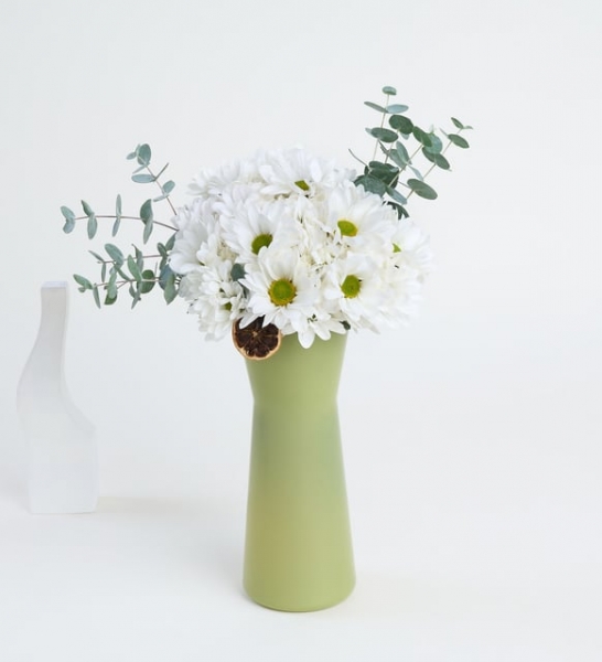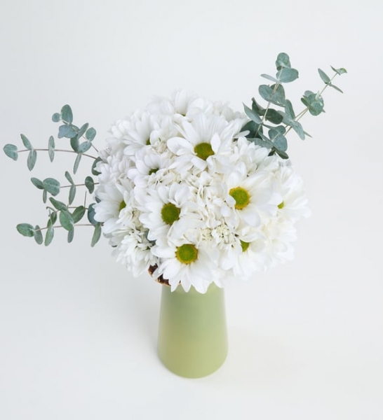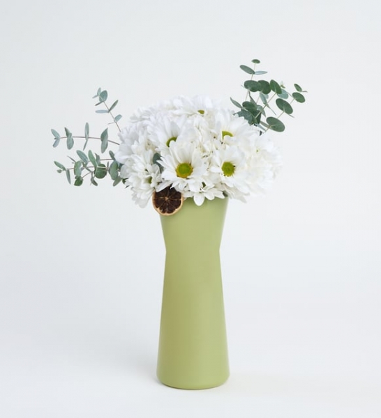 Ürün İsmi: Zeytin Yeşili Cam Vazoda Beyaz Papatya Buketi